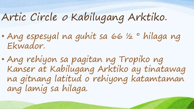 Ito ay pahalang na imahinaryong guhit na matatagpuan sa 6627 degrees hilagang latitud Ano ang tawag sa bahaging nasa pagitan ng kabilugang arktiko at tropiko ng kanser at ang nasa pagitan ng kabilugang antarktiko at tropiko ng kaprikorniyo. Lahat ng mga bagay kung gayon na ibig ninyong gawin ng mga tao sa inyo gayundin ang dapat ninyong gawin sa kanila. Bago sabihin ni Jesus ang siniping teksto sa itaas binanggit muna niya ang isang bagay na alam na ng.