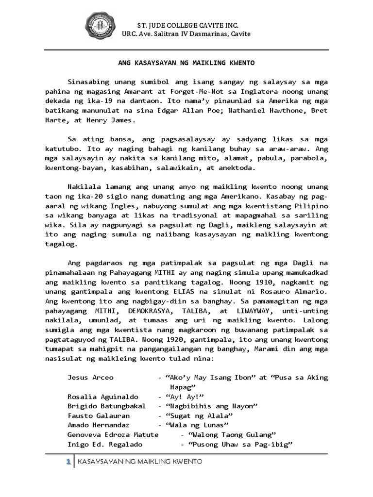 353062361 Ang Kasaysayan Ng Maikling Kwento Docx