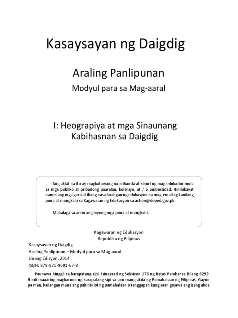 3 question Ano ang ibig sabihin ng kasaysayan. Ano ang ibig sabihin ng planetang daigdig. DRAFT April 1 2014 11 MODYUL 1.